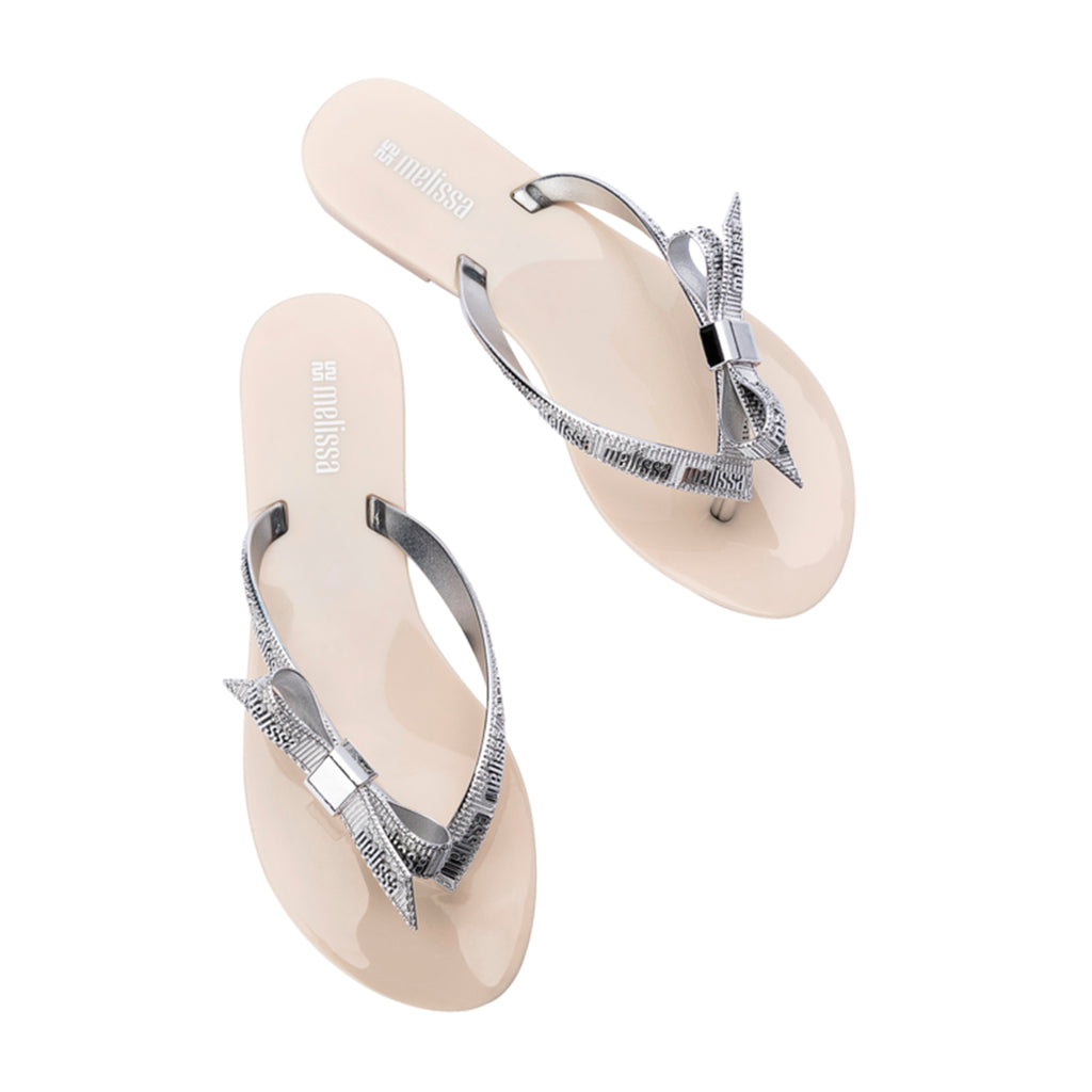The Melissa Harmonic M Lover Chrome is the perfect fusion of femininity and a futuristic touch. Featuring straps printed with the brand's logo and a metallic finish, this model brings the charm of the front bow reinvented with even more shine and personality. The lightweight sole ensures everyday comfort, while the chrome-effect colors add sophistication to your summer looks. A true standout for those who love to combine practicality and style with attitude.