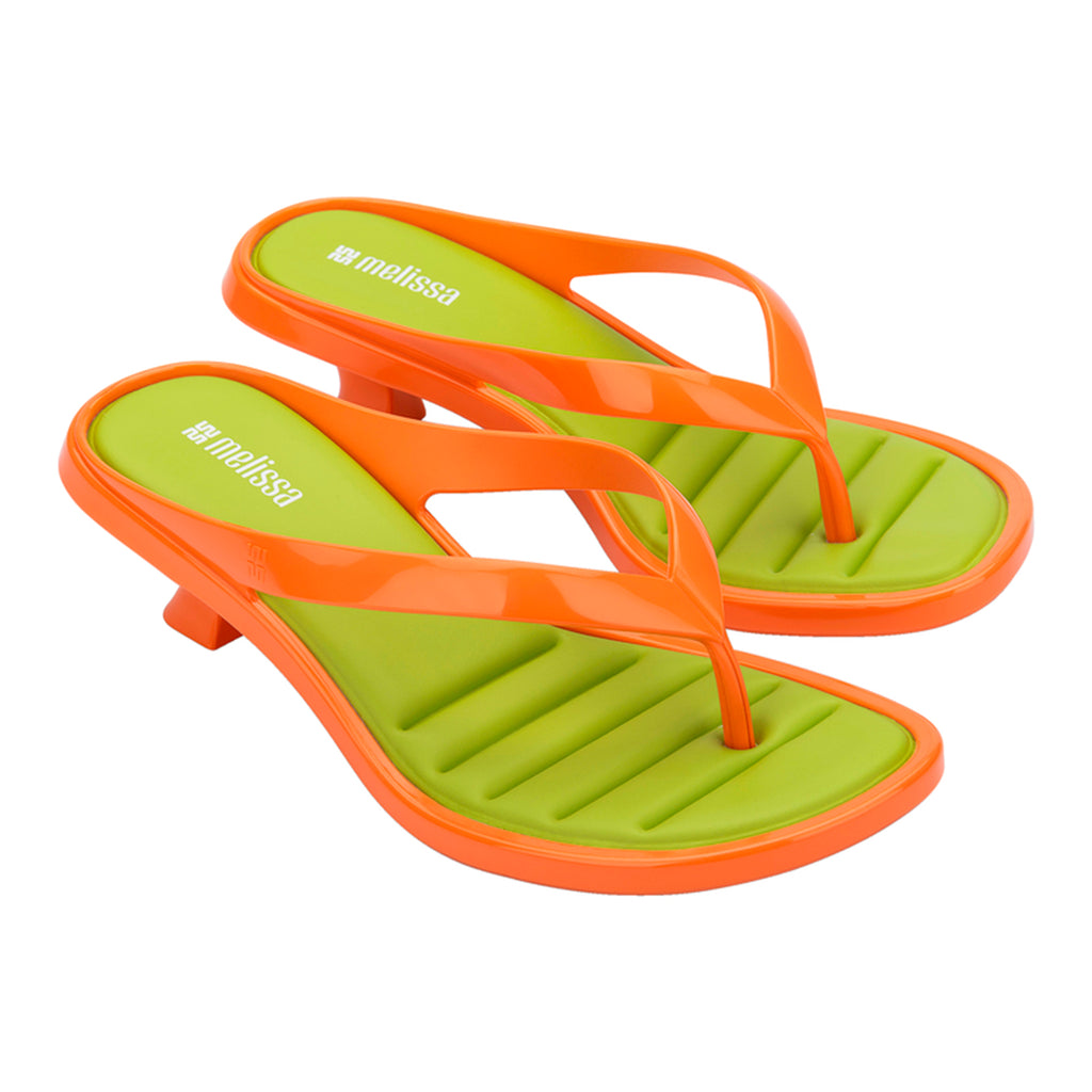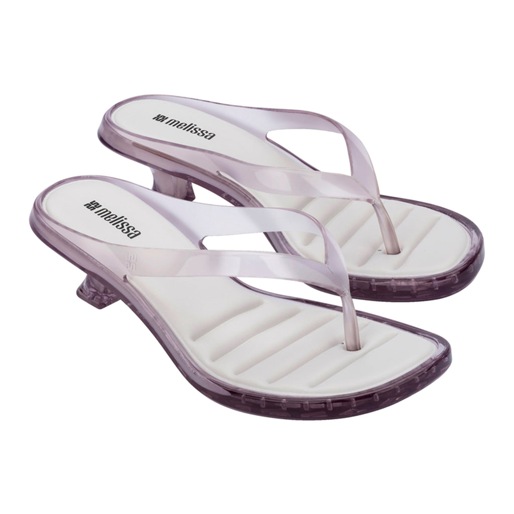 The Melissa Thong Kitten Heel brings to life one of today’s top trends: kitten heels, making a comeback on runways and streets as a symbol of practical and elegant femininity. Featuring thin flip-flop-style straps and a low curved heel, the design embraces a refreshed nostalgic look. Melissa’s signature jelly finish takes on a sophisticated twist with transparency and a soft shine, enhancing the model’s fashion-forward and versatile appeal — perfect for effortlessly transitioning from day to night.