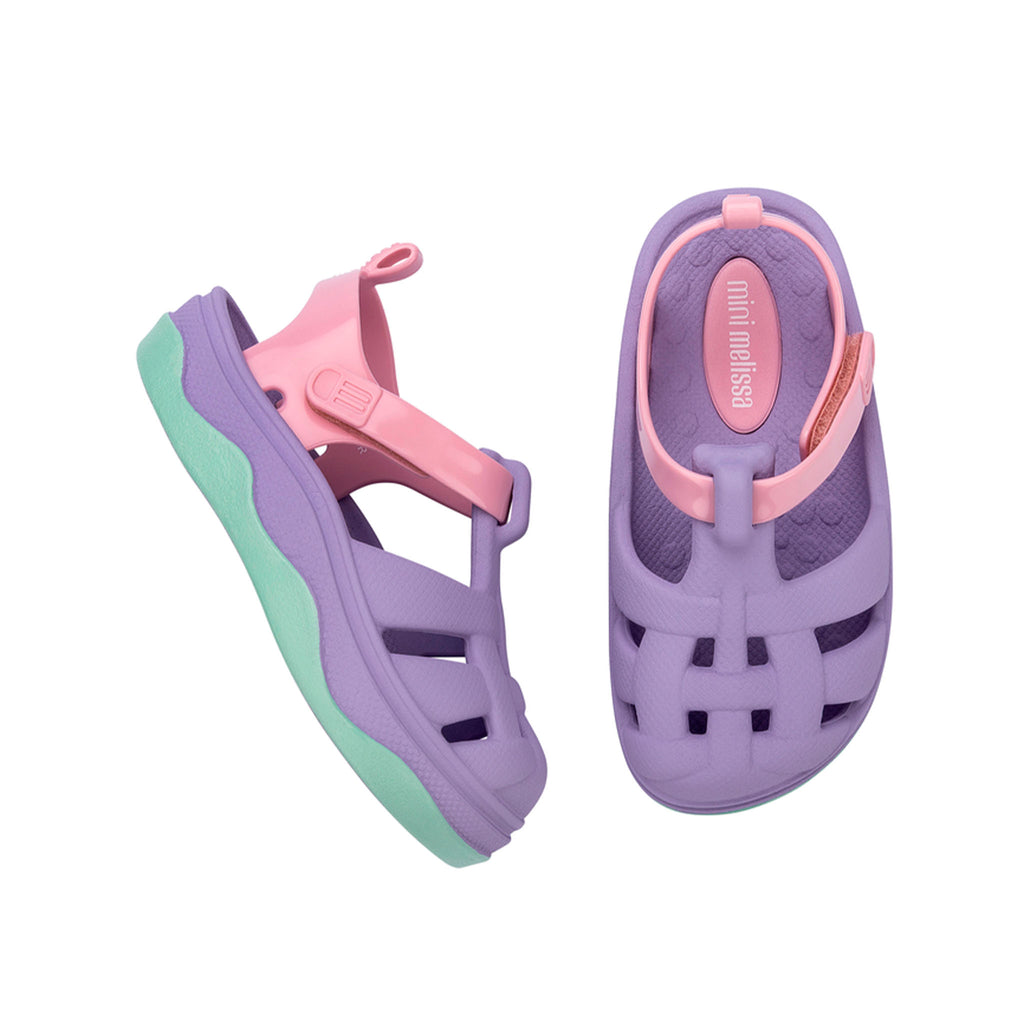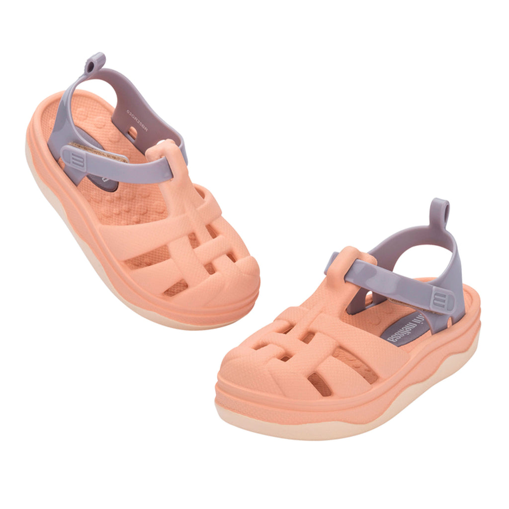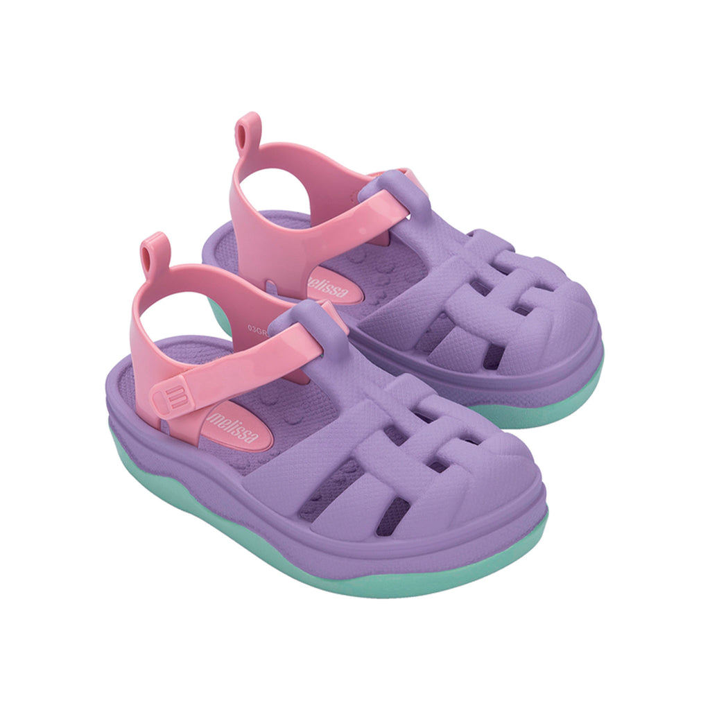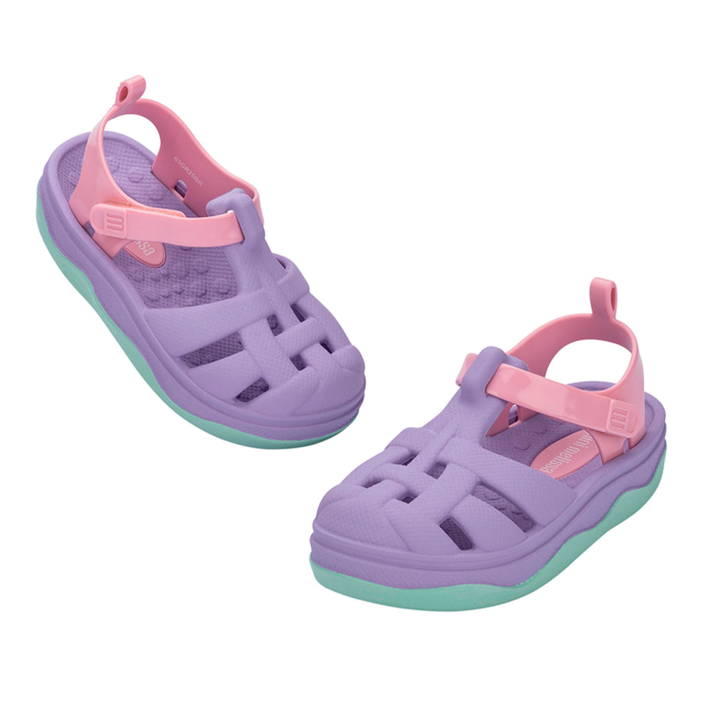 The Mini Melissa Zig is a fun and lightweight sandal made from expancel PVC, providing comfort and durability. Inspired by the classic Possession model, it features playful textures and a charming print on the sole, ensuring a unique and stylish look. Perfect for little explorers, the Mini Melissa Zig is easy to clean and ideal for any occasion.