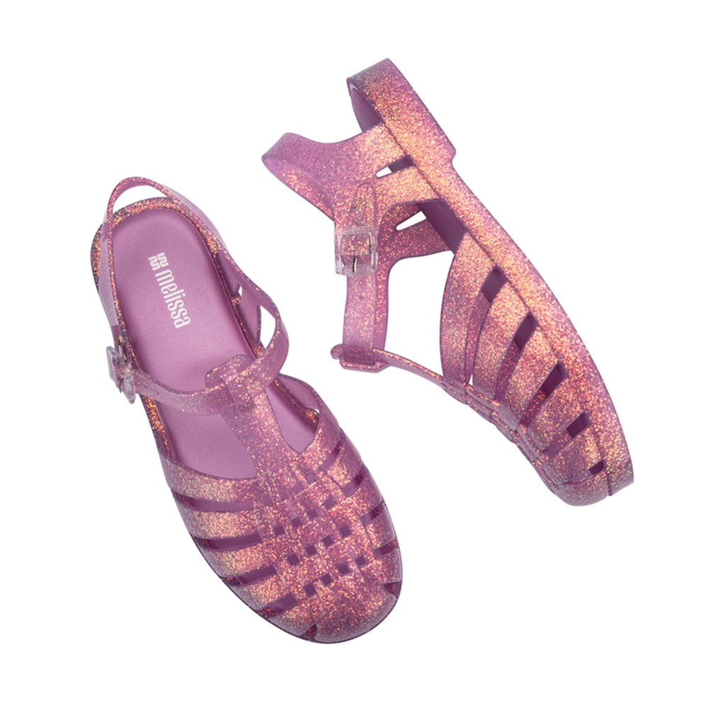 Rediscover our 90s star, the Melissa Possession – an iconic creation that transcends time! The sandal is the perfect versatile addition to any outfit, elevating looks and bringing comfort and style to the feet of our M-lovers. This version features a glittery finish, which adds glamour and a festive vibe to the season. Available in baby, kids', and adult sizes.