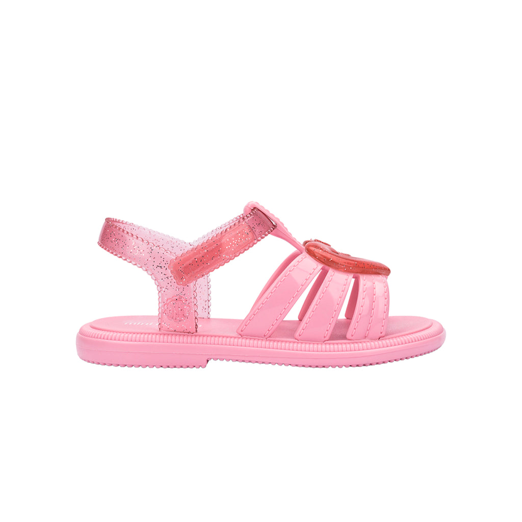 Do you believe in magic? Mini Melissa Lovely Hip will show you! With a playful design, the heart shape prominently featured on the upper, thanks to the bicolor technology, adds a touch of cuteness, charm, and color to the shoe.