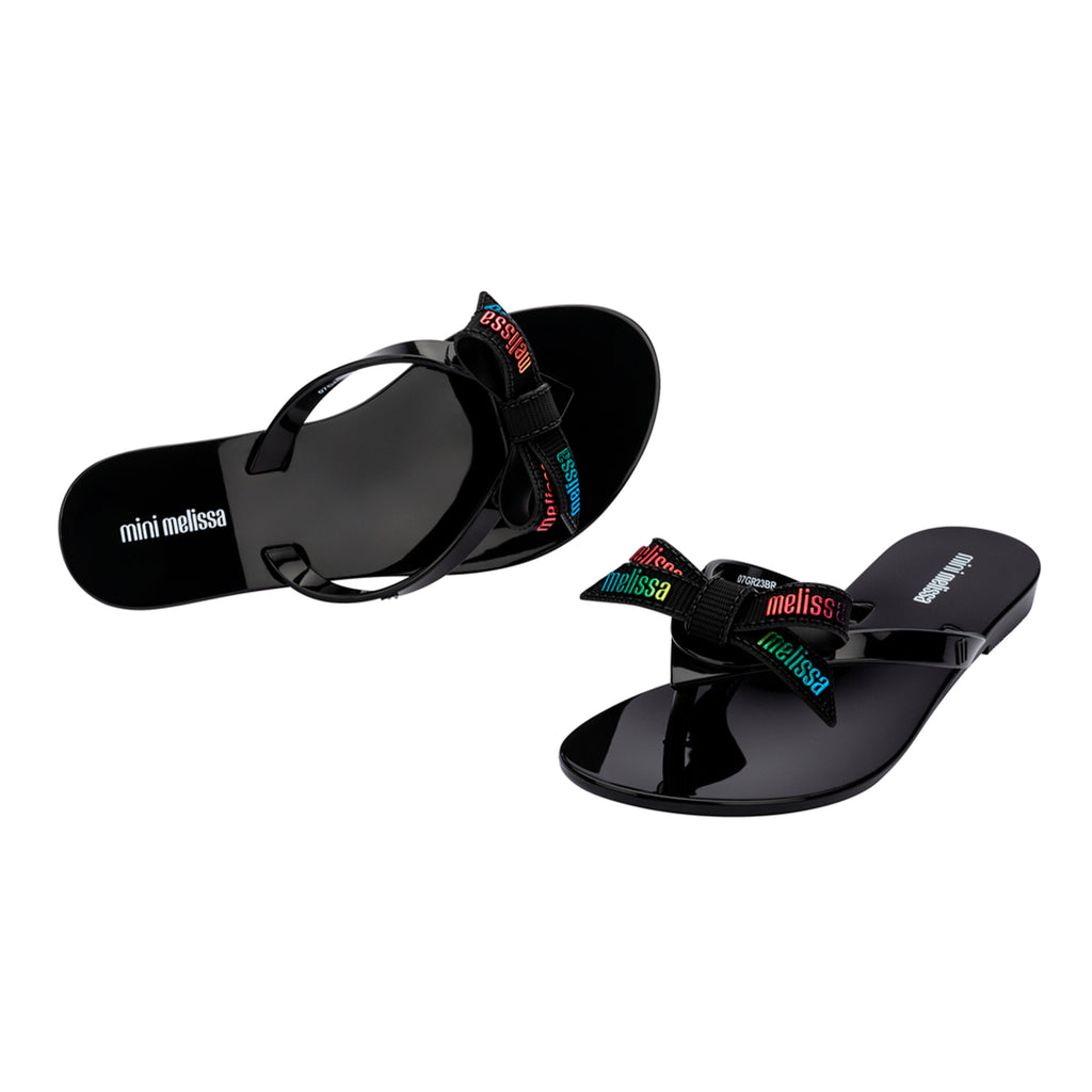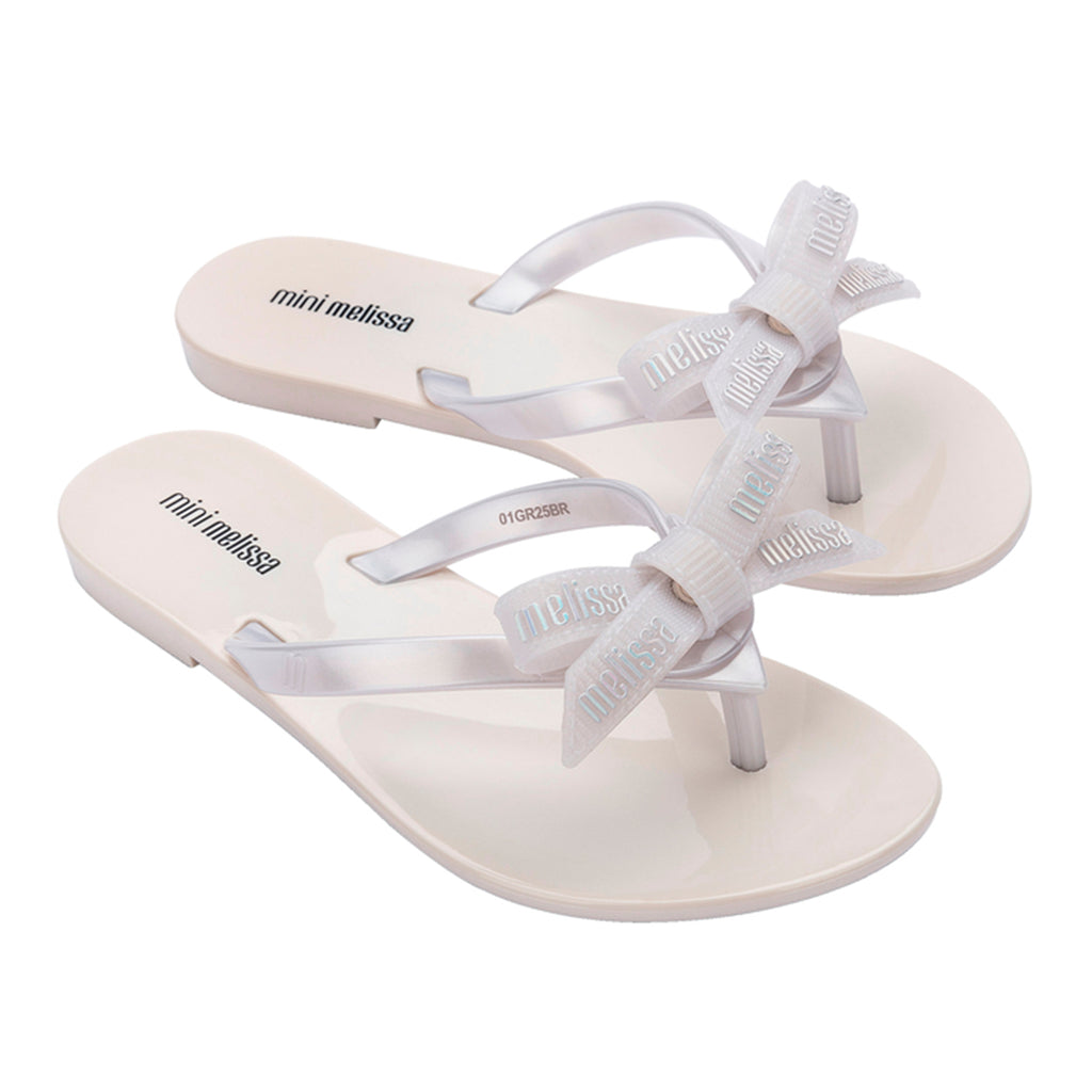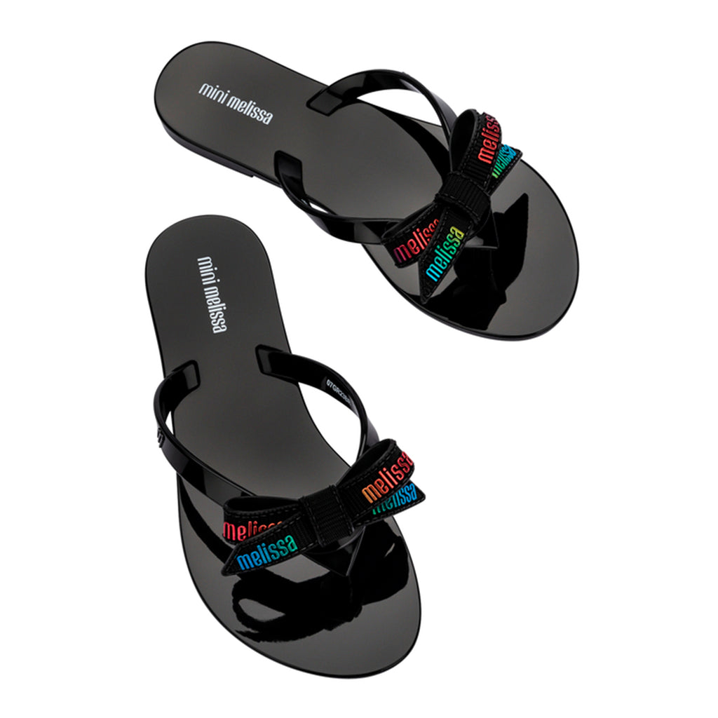 Step into summer with Mini Melissa Harmonic M Lover flip flops. The delicate bow, adorned with the iconic Melissa logo adds a romantic touch to this timeless silhouette. These are ultra-lightweight and practical, making them the perfect choice for every warm-weather outfit. Plus, you can match your mini! Flip flop sandal style Light-as-air construction Made with wear-resistant Melflex Melbubble sole for durability and comfort Decorative textured bow Upper: 98% PVC + 2% metal Sole: 100% PVC Bubblegum scent.