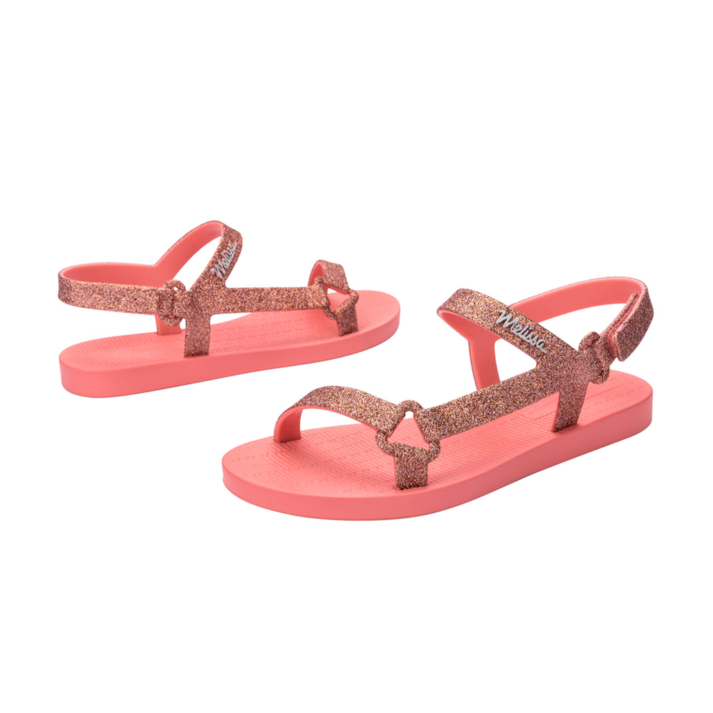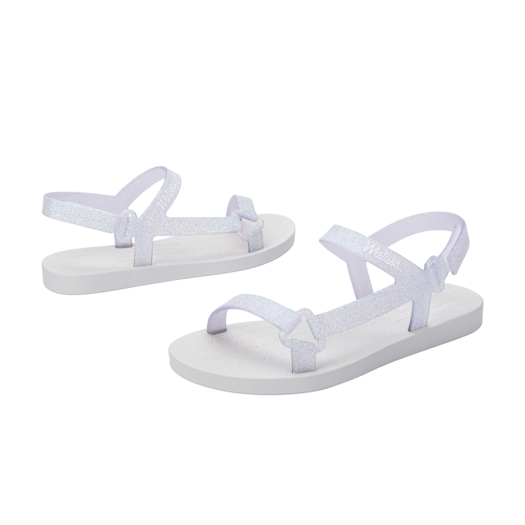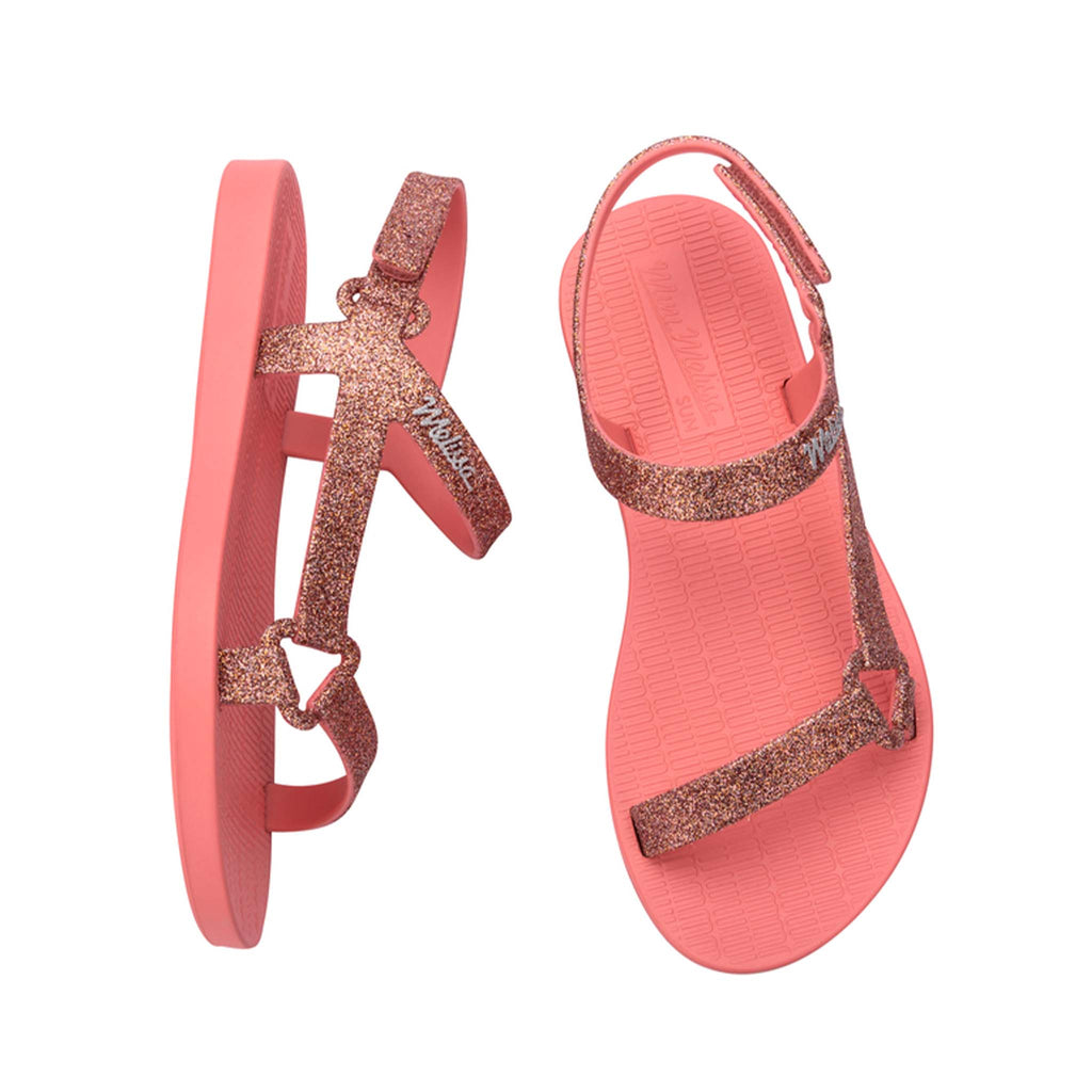 The Mini Melissa Sun Downtown Children's Sandal combines practicality, style and lots of cuteness to make playtime even more extraordinary. The model's comfort and adjustable Velcro closure promise to make little feet run around with ease and safety. The glitter-effect straps promise to add a special touch to the looks of these mini fashionistas.