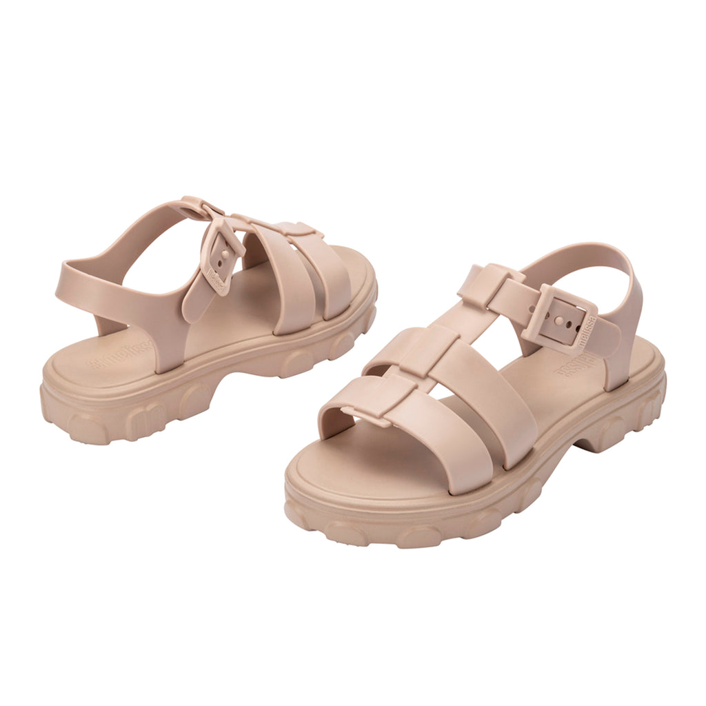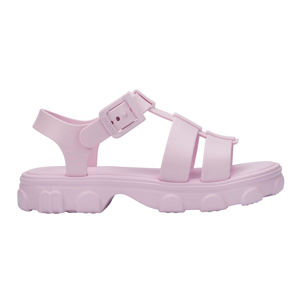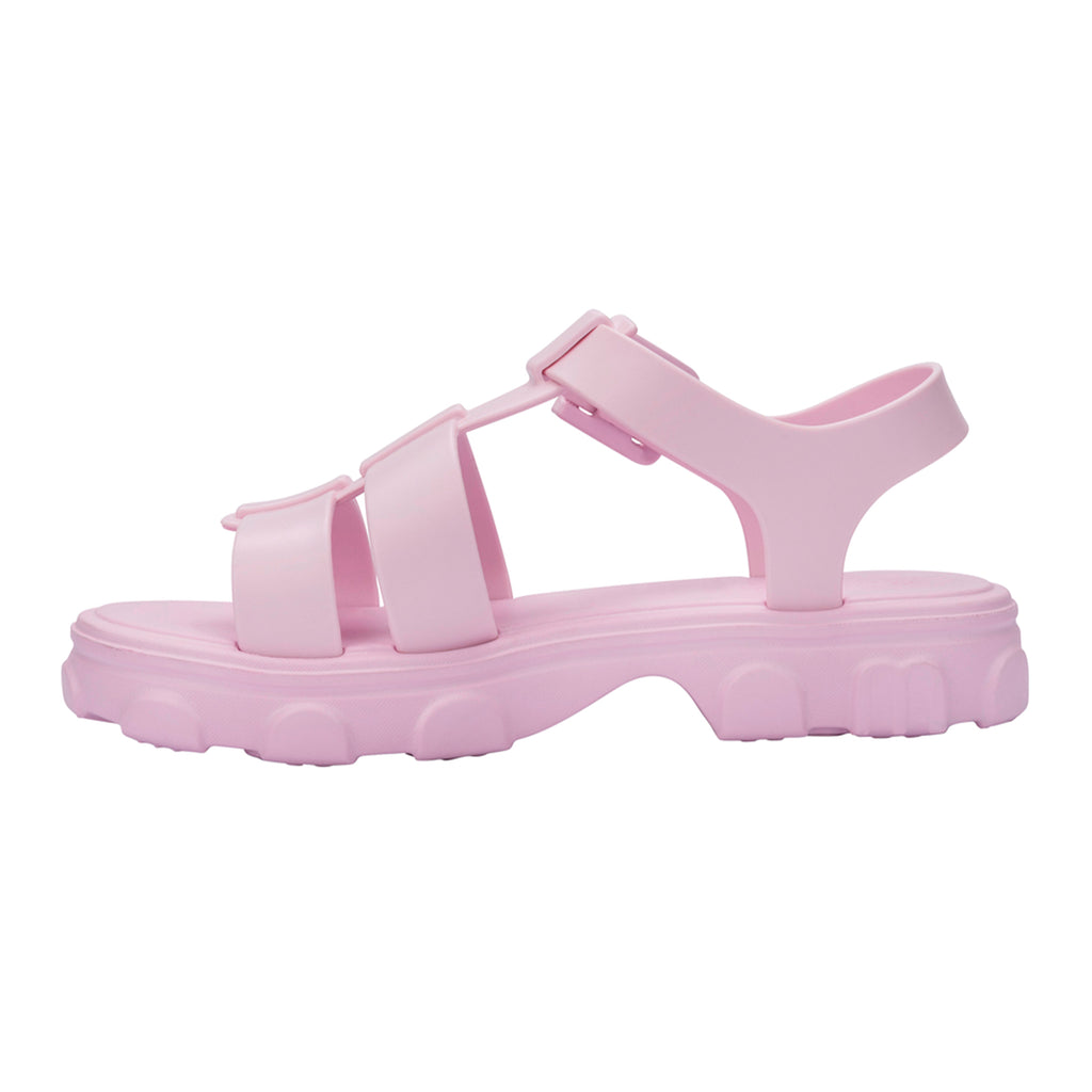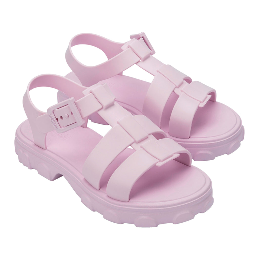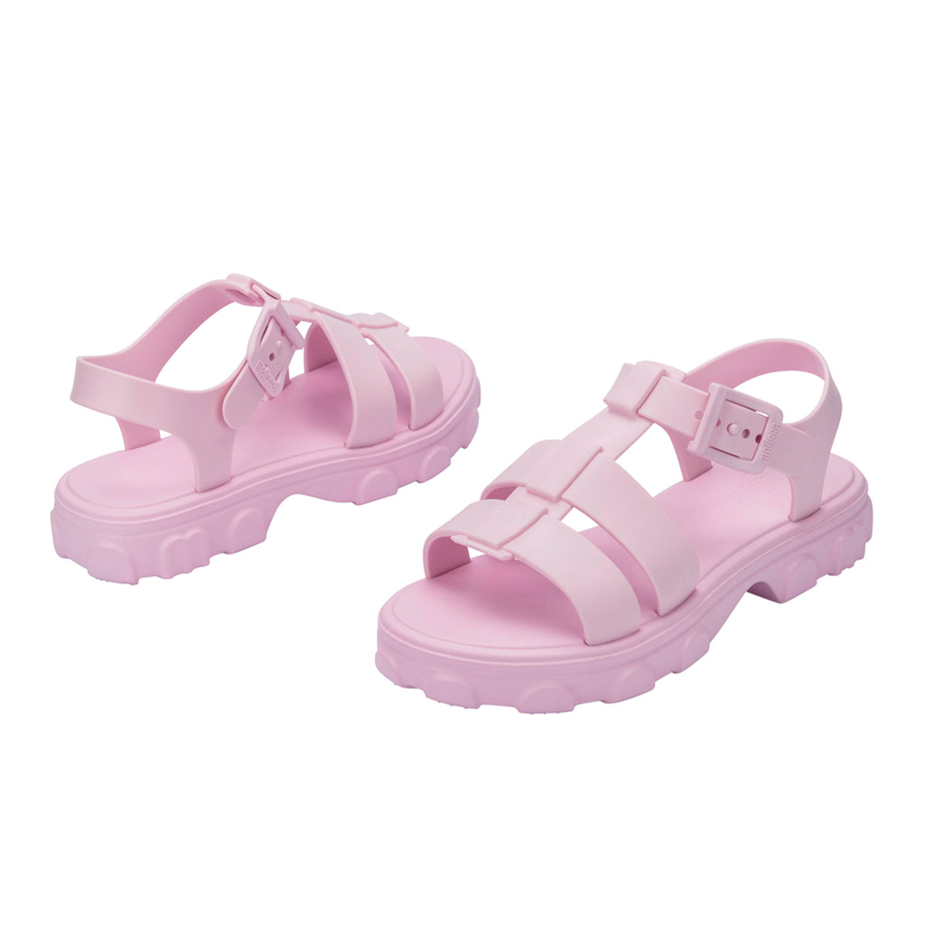 There she goes! The Melissa Ella Sandal brings the trend of woven designs with a lower EVA sole and a Full Plastic PVC upper featuring a stitched buckle. It offers comfort and practicality for everyday wear never going out of style!