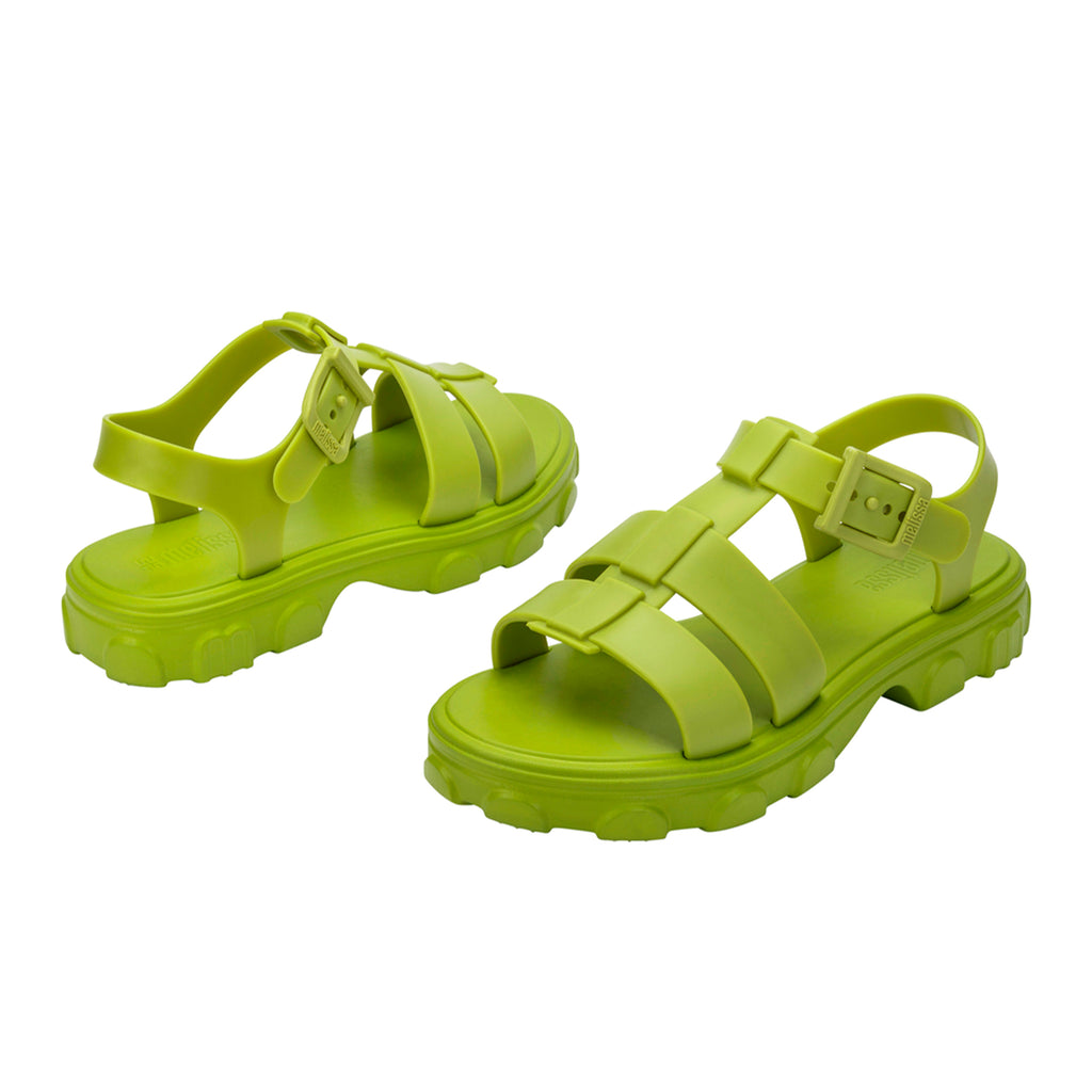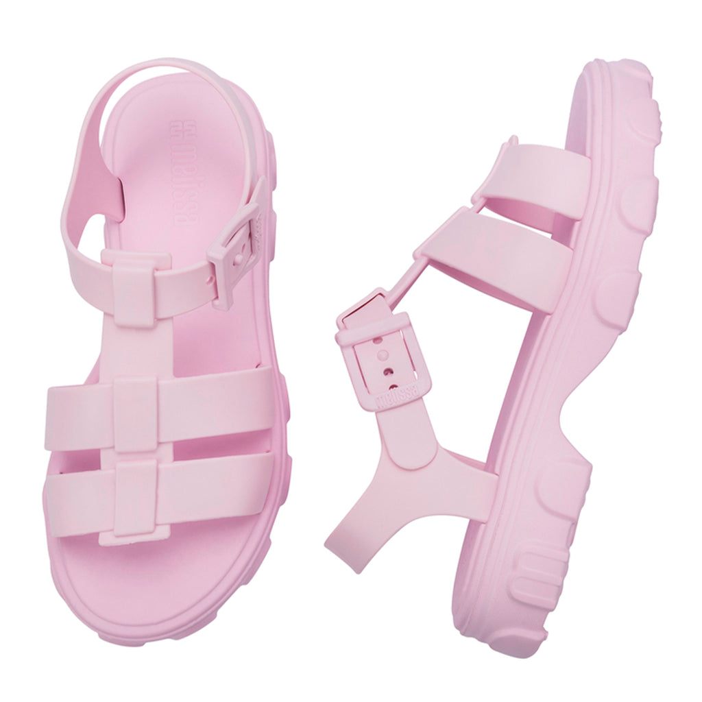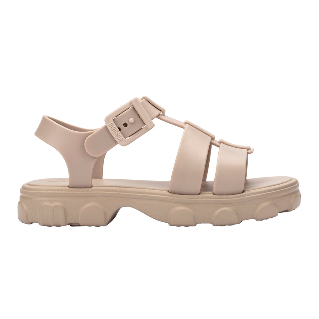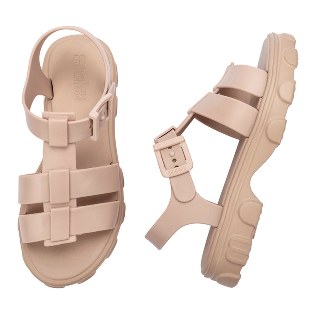 There she goes! The Melissa Ella Sandal brings the trend of woven designs with a lower EVA sole and a Full Plastic PVC upper featuring a stitched buckle. It offers comfort and practicality for everyday wear never going out of style!