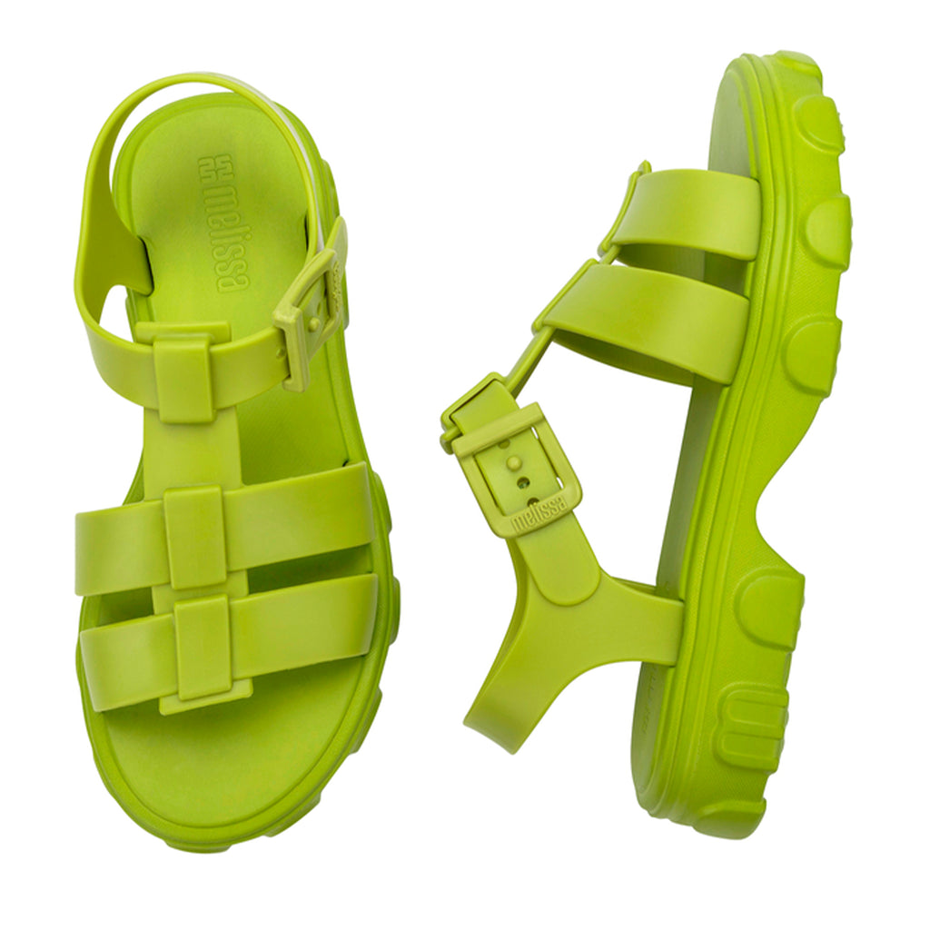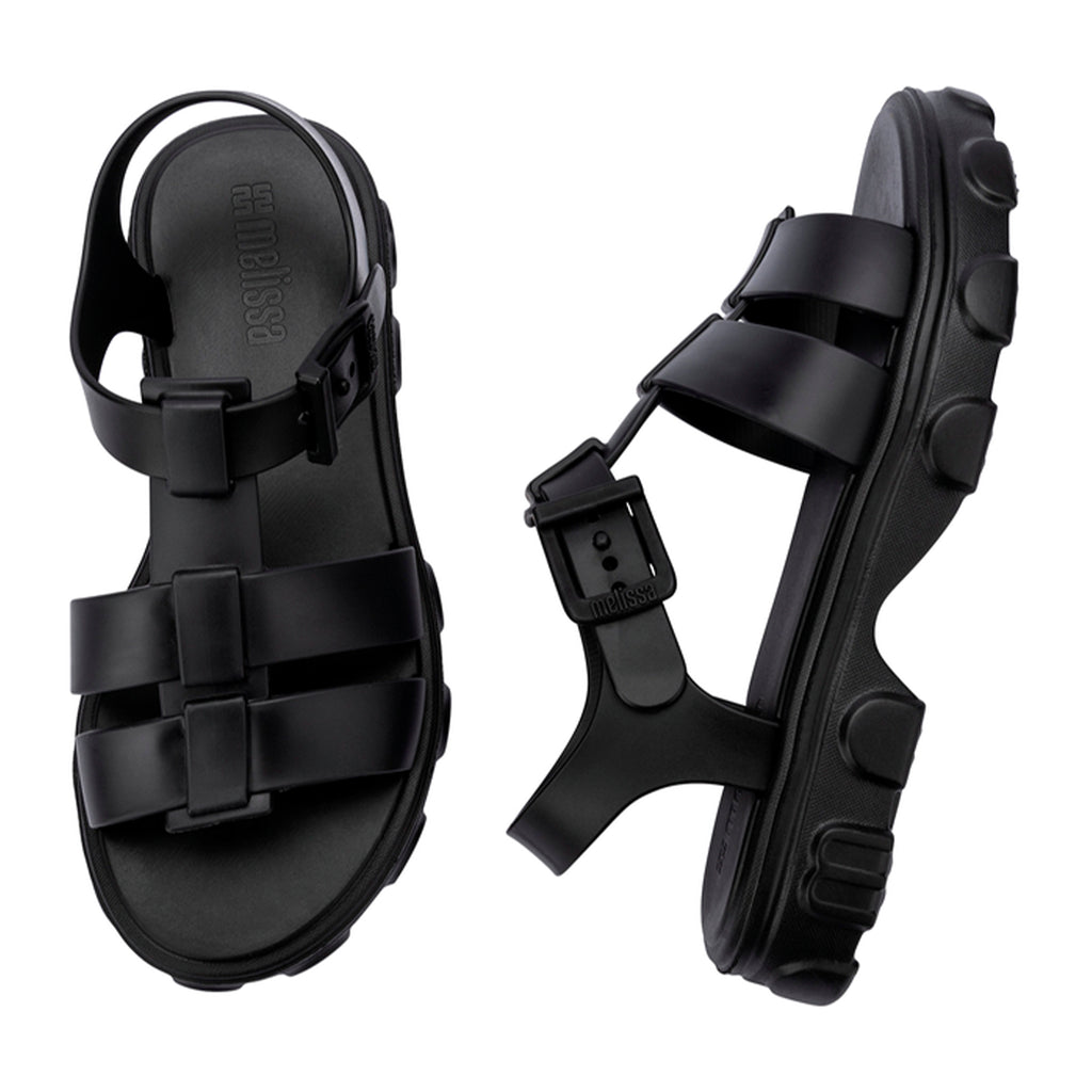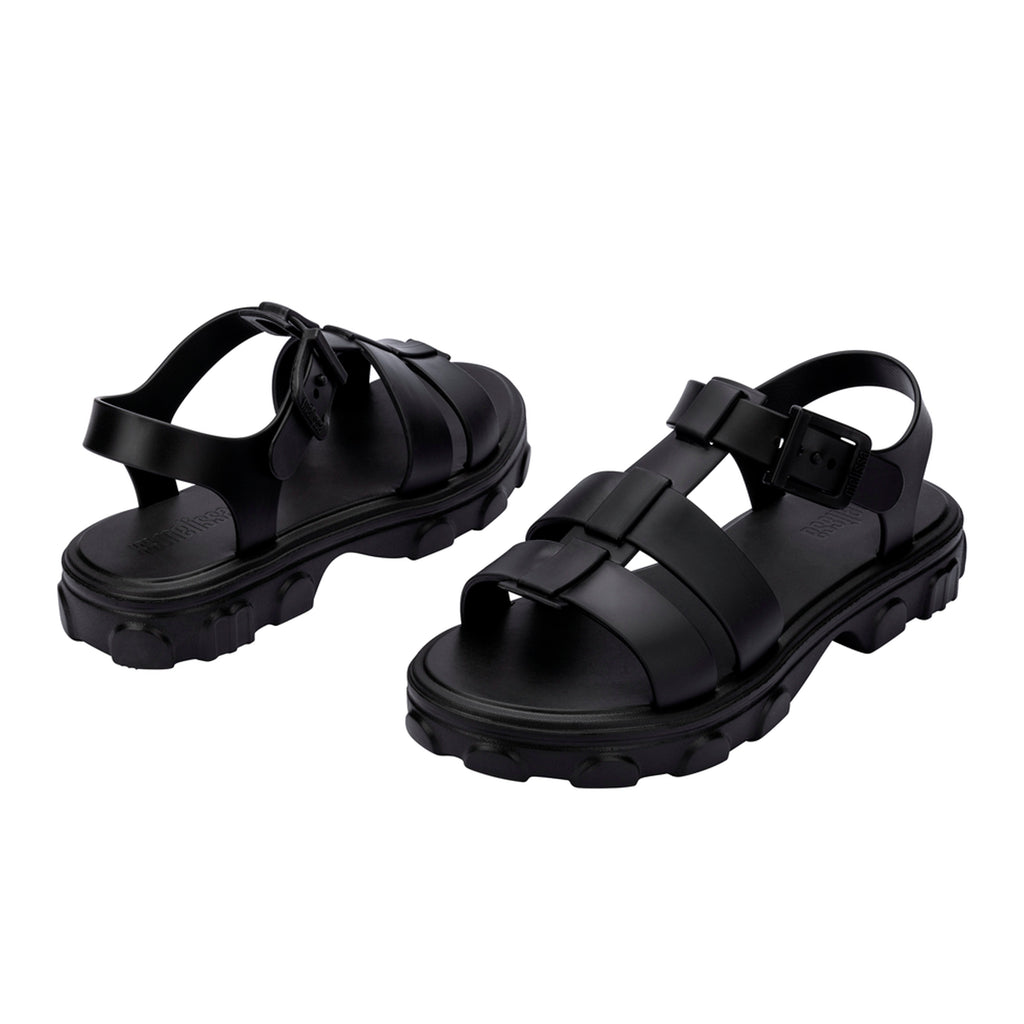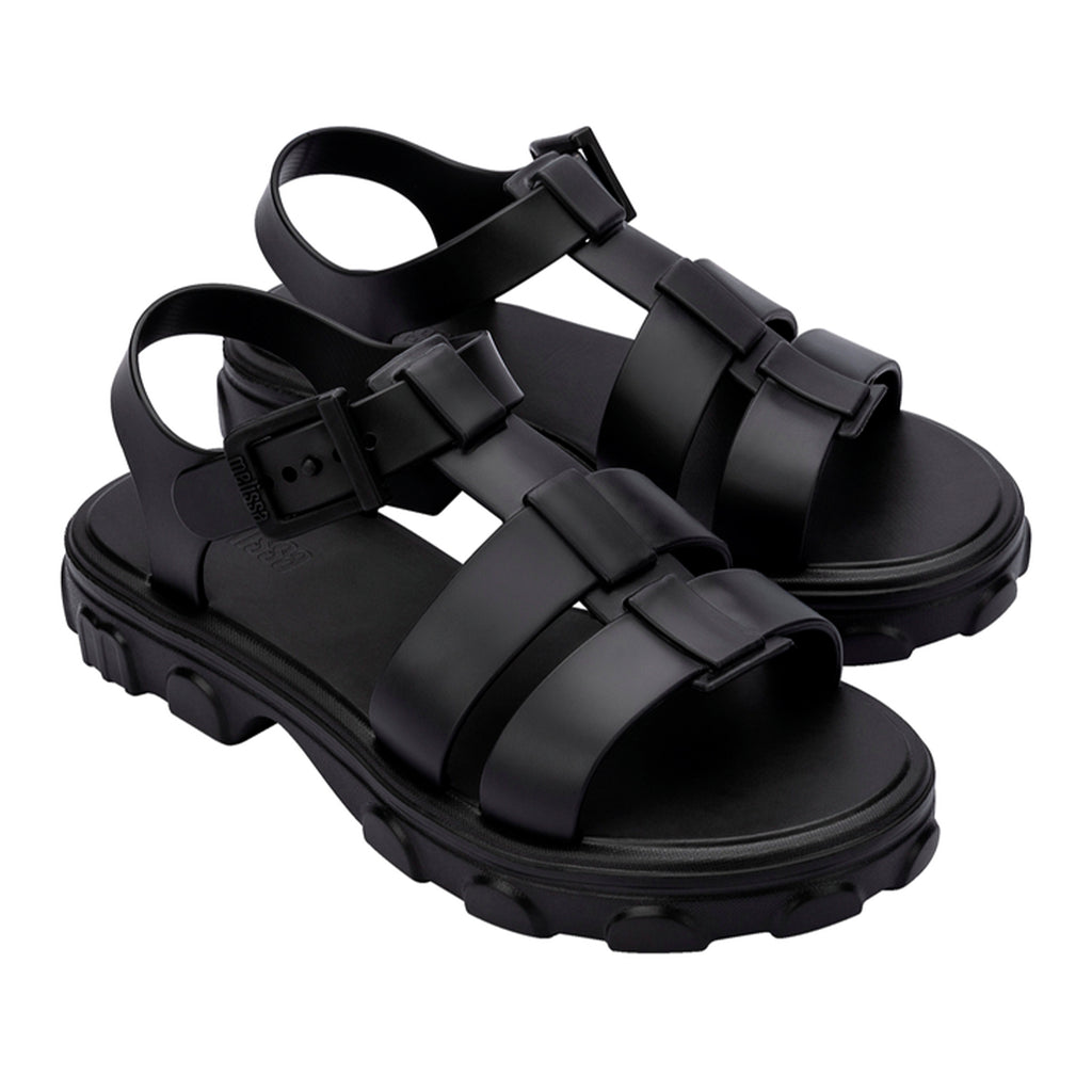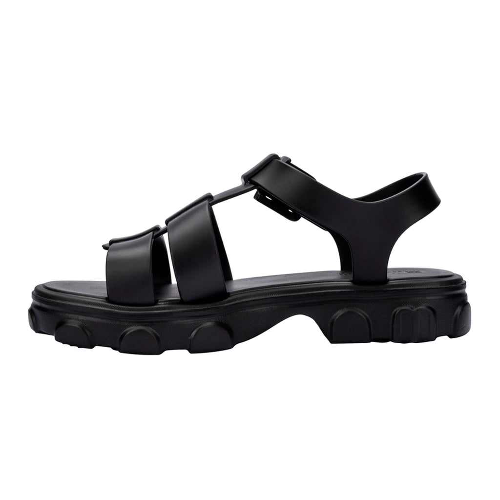 There she goes! The Melissa Ella Sandal brings the trend of woven designs with a lower EVA sole and a Full Plastic PVC upper featuring a stitched buckle. It offers comfort and practicality for everyday wear never going out of style!