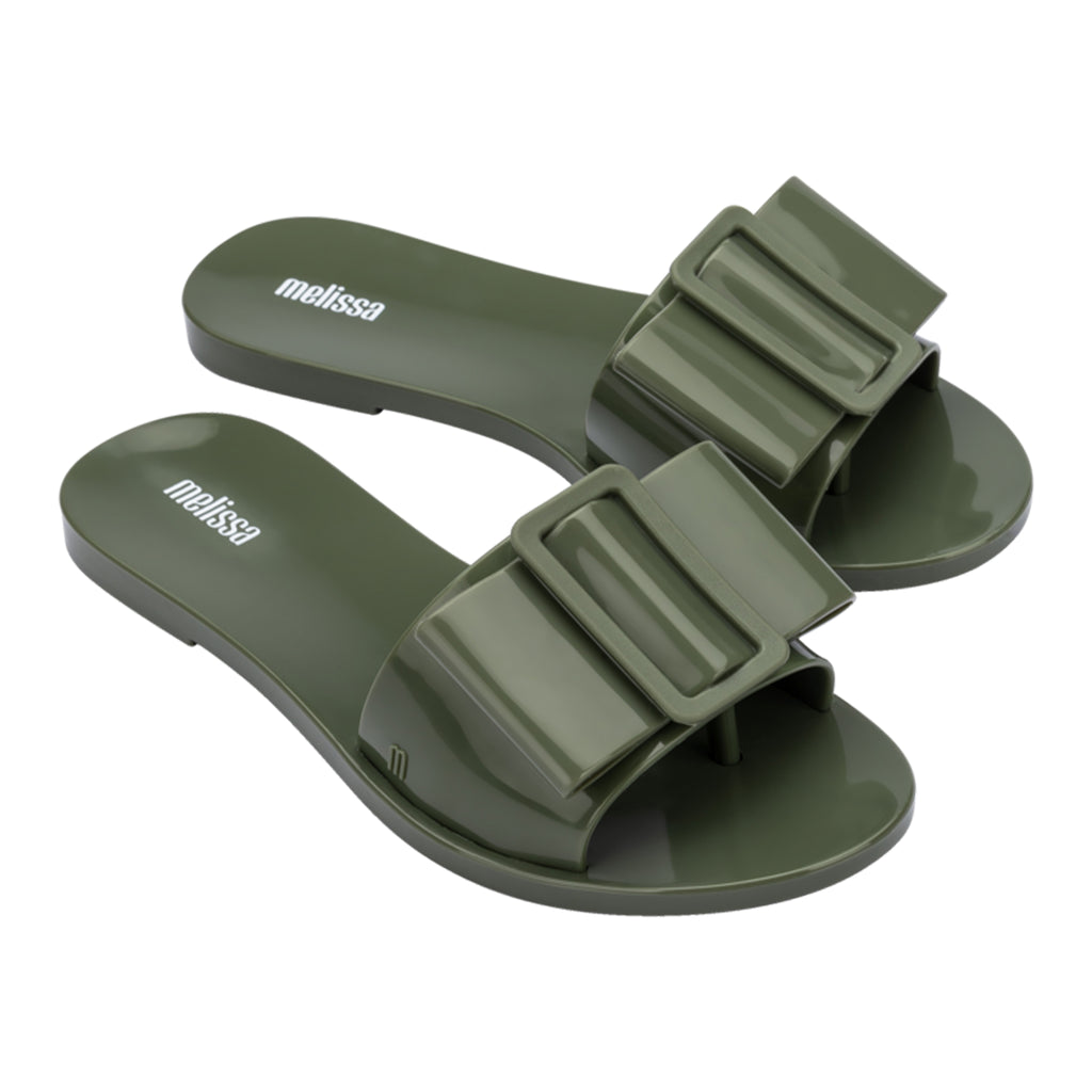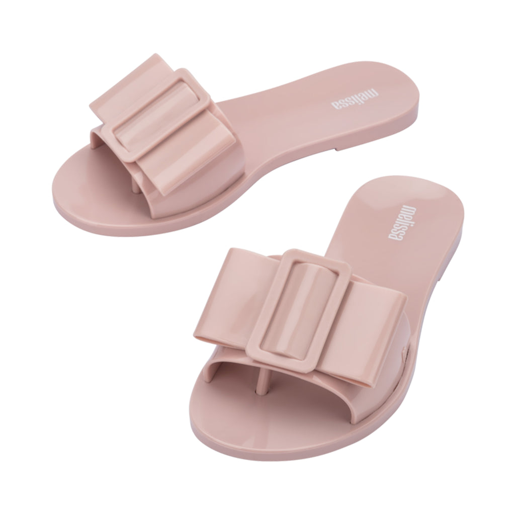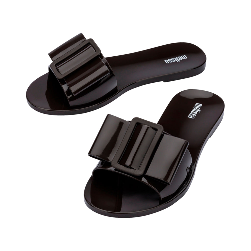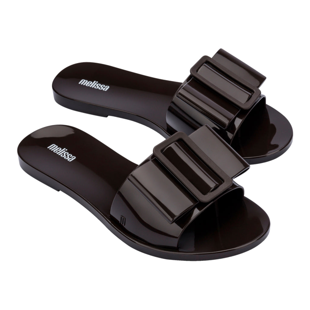 Fashion has many genre's which gives many plently ways to express. Romance is skyrocketing in today's trend, with its delicate and feminine shapes. Introducing Melissa Babe, a delicate built slide featuring single strap that ensures a perfect fit. The detailing gives it a touch of style that no other can compare.