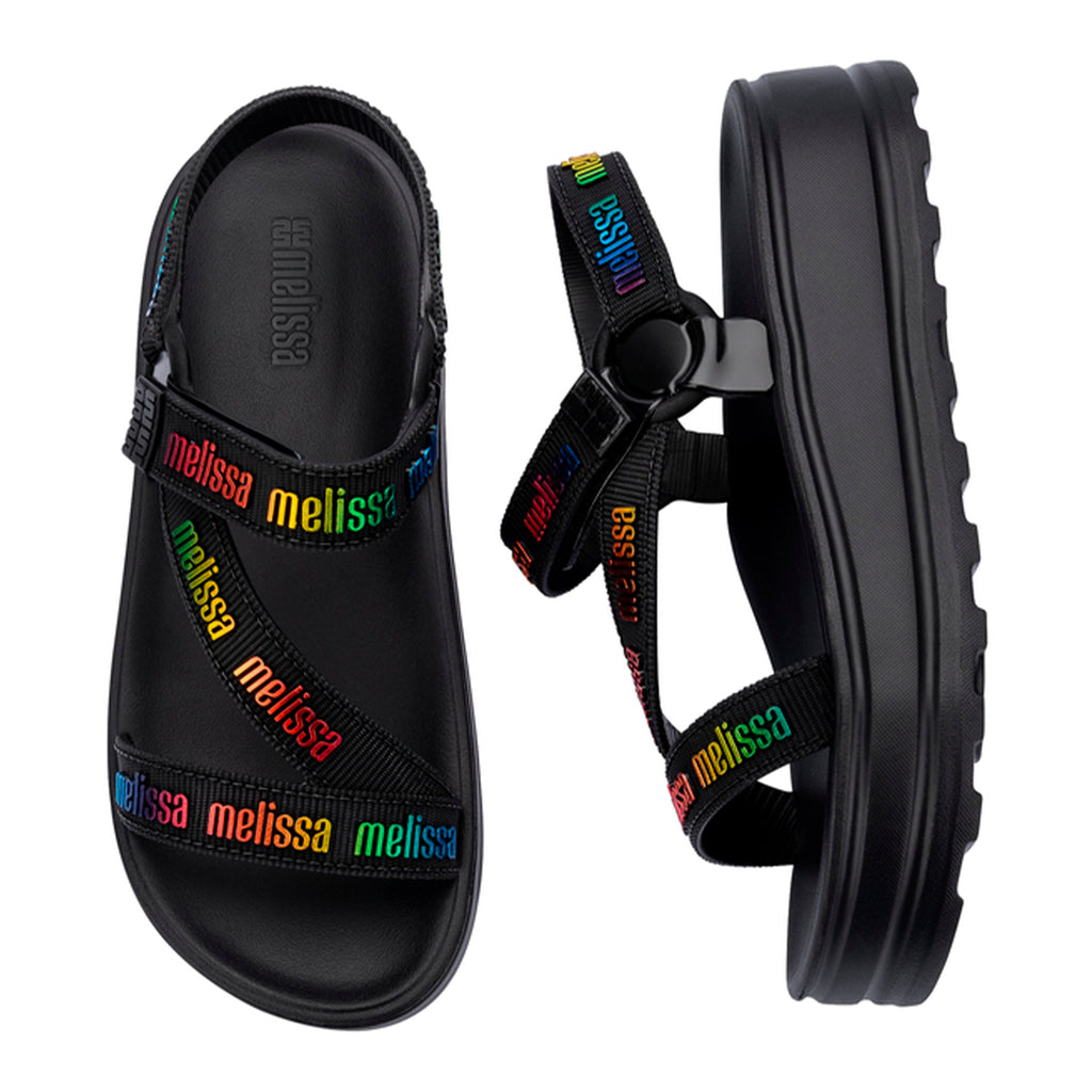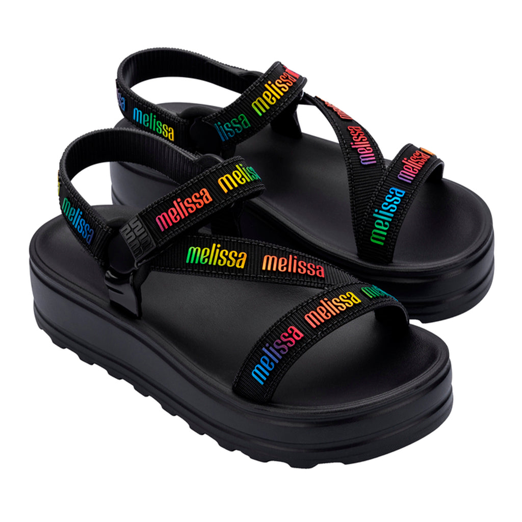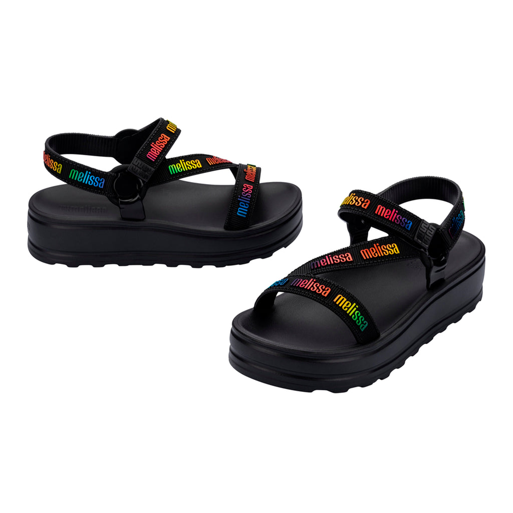 The Melissa Stripes M-Lover combines versatility and functionality with Melissa's extraordinary DNA. The design features overlapping straps along with the brand's logo in hotstamp. The coolest you'll ever look!