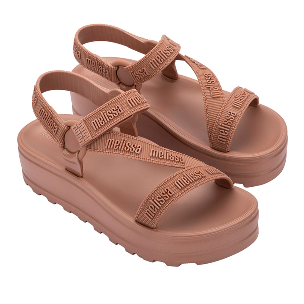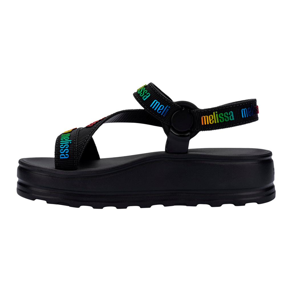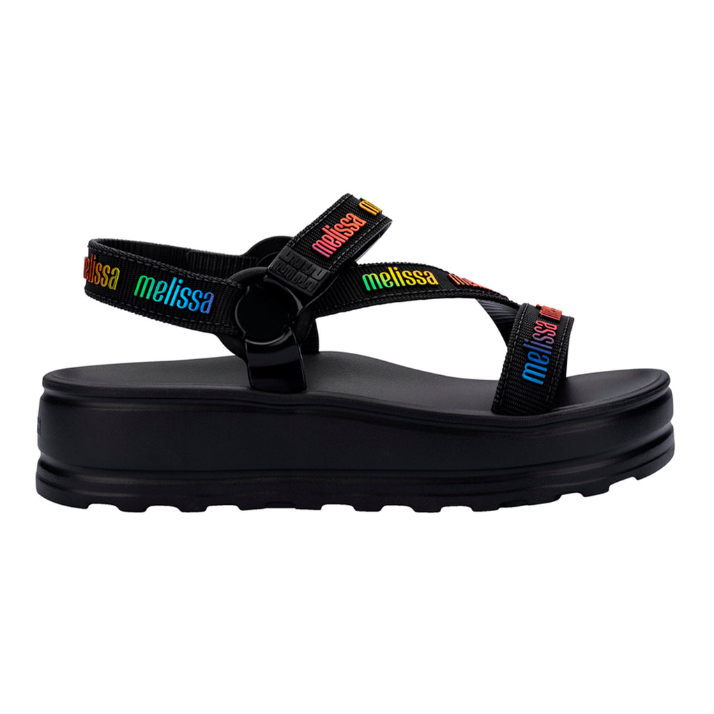 The Melissa Stripes M-Lover combines versatility and functionality with Melissa's extraordinary DNA. The design features overlapping straps along with the brand's logo in hotstamp. The coolest you'll ever look!
